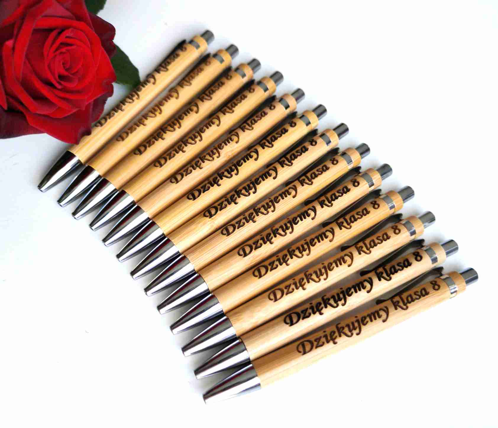 Grawerowane drewniane długopisy to doskonały wybór na konferencje, targi, jako podarunek dla partnerów biznesowych lub elegancki element wyposażenia biura.